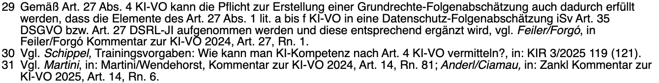 Um die Vermittlung von KI-Kompetenzen fachlich anschlussfähig zu machen, ist es daher geboten, konkrete Beispiele aus dem jeweiligen Fachverfahren zu integrieren, insb. bei Hochrisiko-KI, die auf rechtlich sensitive Daten zugreift oder normative Entscheidungen vorbereitet (zB Personalbereich)31.